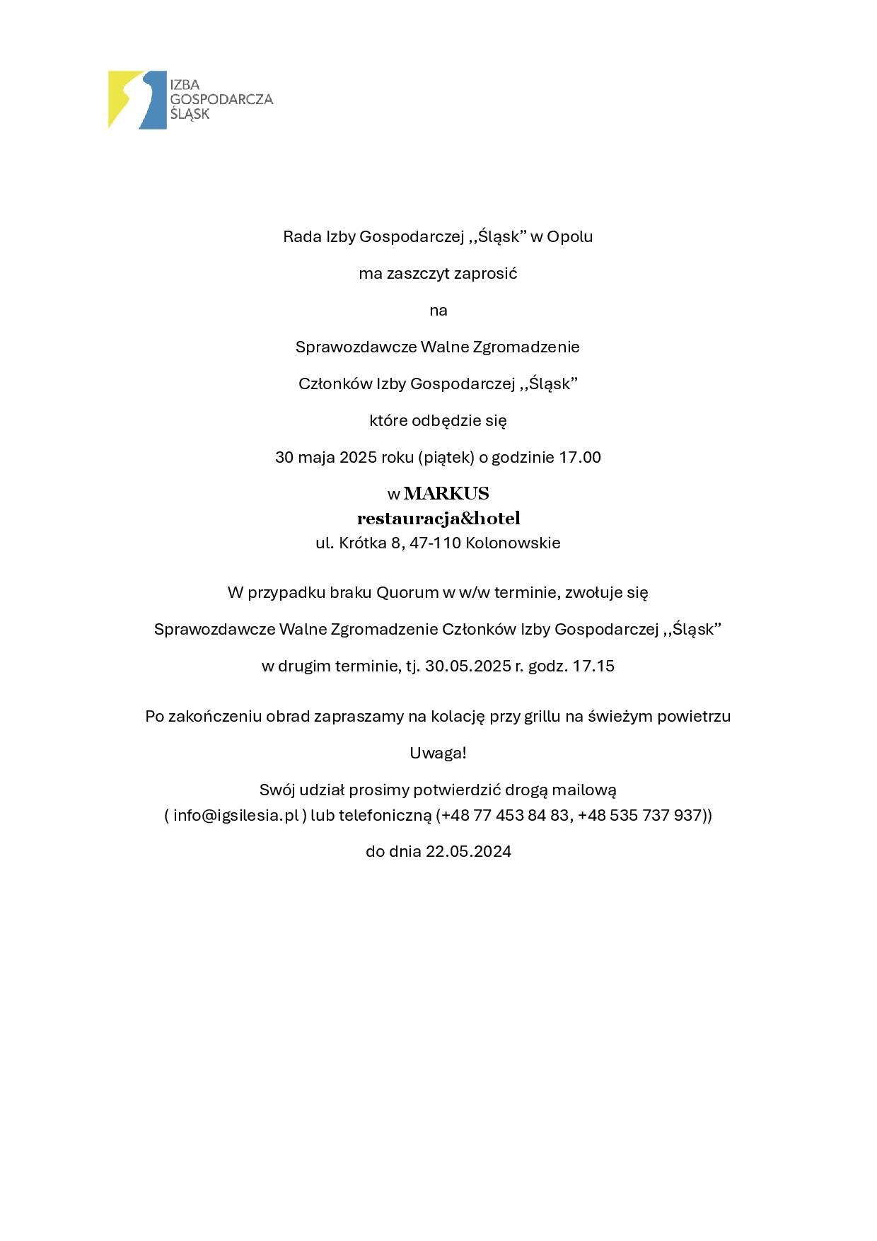 Sprawozdawcze Walne Zgromadzenie Członków Izby Gospodarczej ,,Śląsk”
